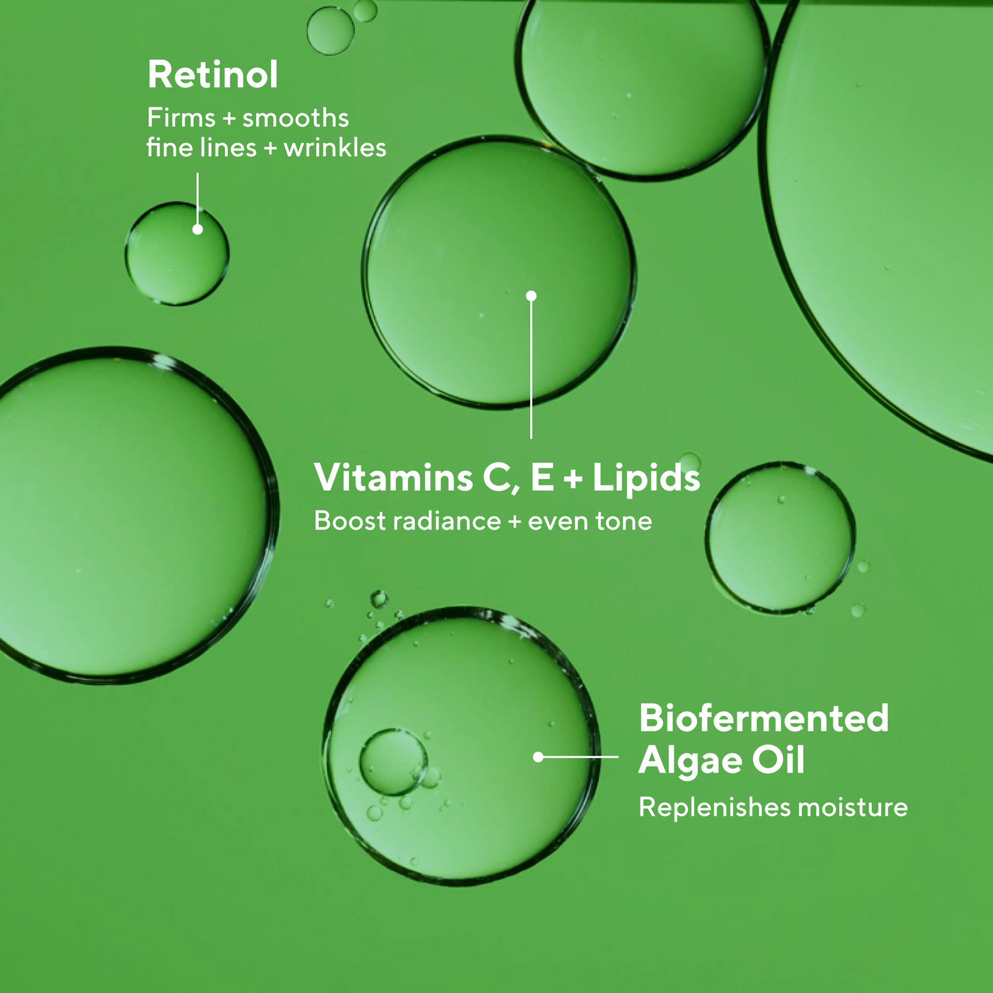 - Biofermented antioxidants help neutralize skin-damaging free radicals and complement retinol's age-delaying benefits